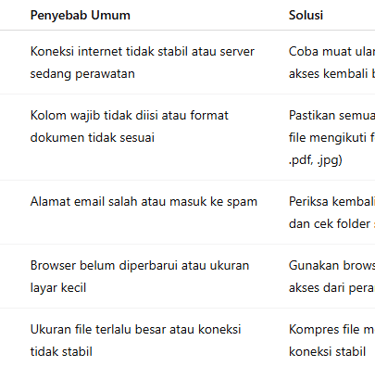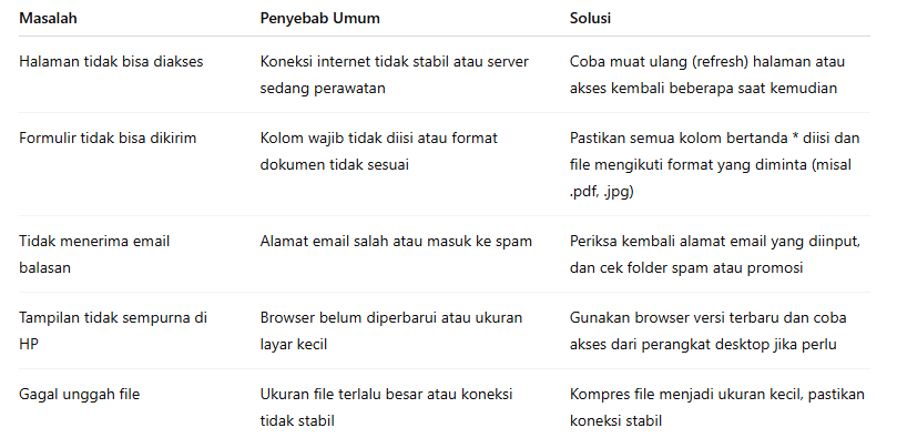 Anda dapat mengunjungi halaman FAQ terlebih dahulu. Jika belum terjawab, silakan gunakan menu Aspirasi dan Pengaduan untuk mengirimkan pertanyaan atau hubungi kontak layanan yang tersedia.